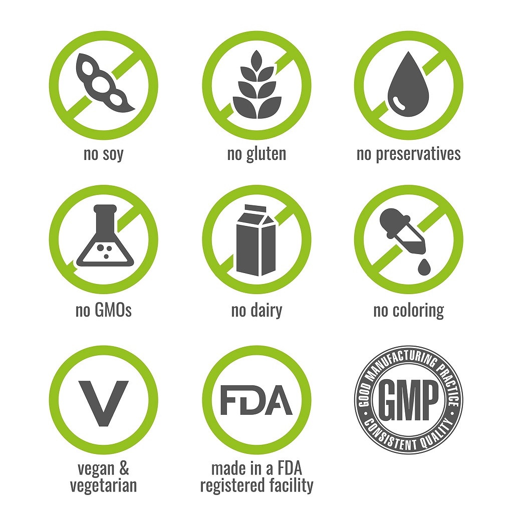 Does NOT Contain GMOs, soy, gluten, dairy, eggs, fish, shellfish, tree nuts, peanut or preservatives.