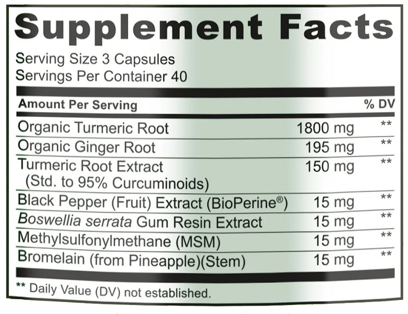 Take 3 capsules a day with food. Food that includes some fat will help with the absorption of turmeric.