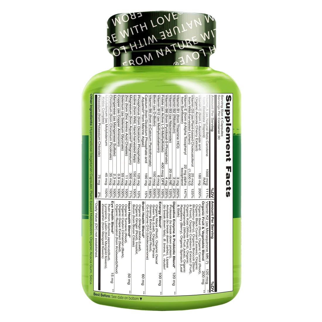 • PREMIUM PLANT-BASED INGREDIENTS : Our Whole Food Multivitamins are made with plant-based vitamins and minerals including Vitamin D3 from lichen, Vitamin E from Sunflower, and Calcium and Magnesium from marine algae.