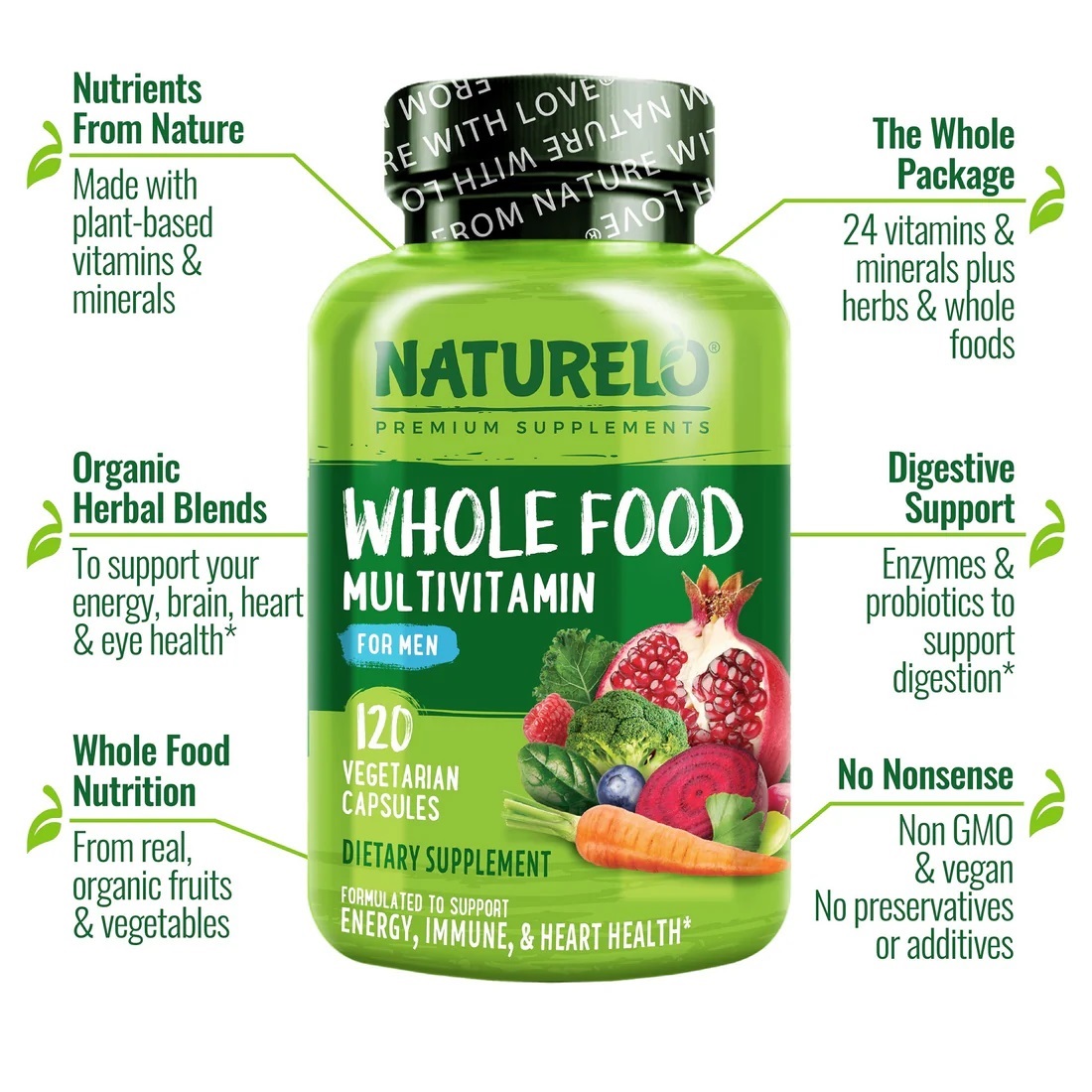 • WHOLE FOOD NUTRITION : Our multivitamins are made with real, organic fruits and vegetables for that whole food nutrition your body craves, complete with nutritional cofactors that help your body recognize and absorb the nutrients.