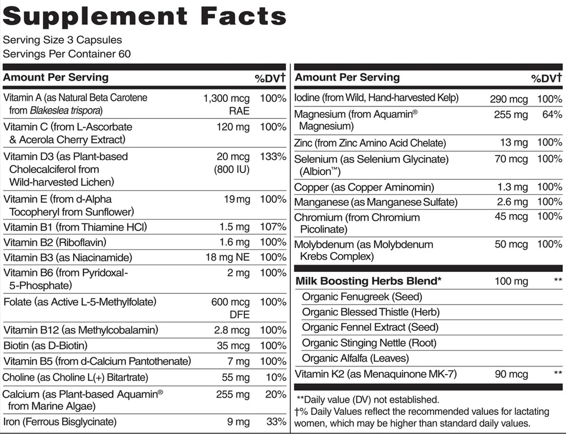 PREMIUM POSTNATAL NUTRITION : Designed to meet the specific nutritional needs of breastfeeding moms, our full-spectrum formula supports healthy infant development and postpartum recovery with 24 vitamins & minerals.