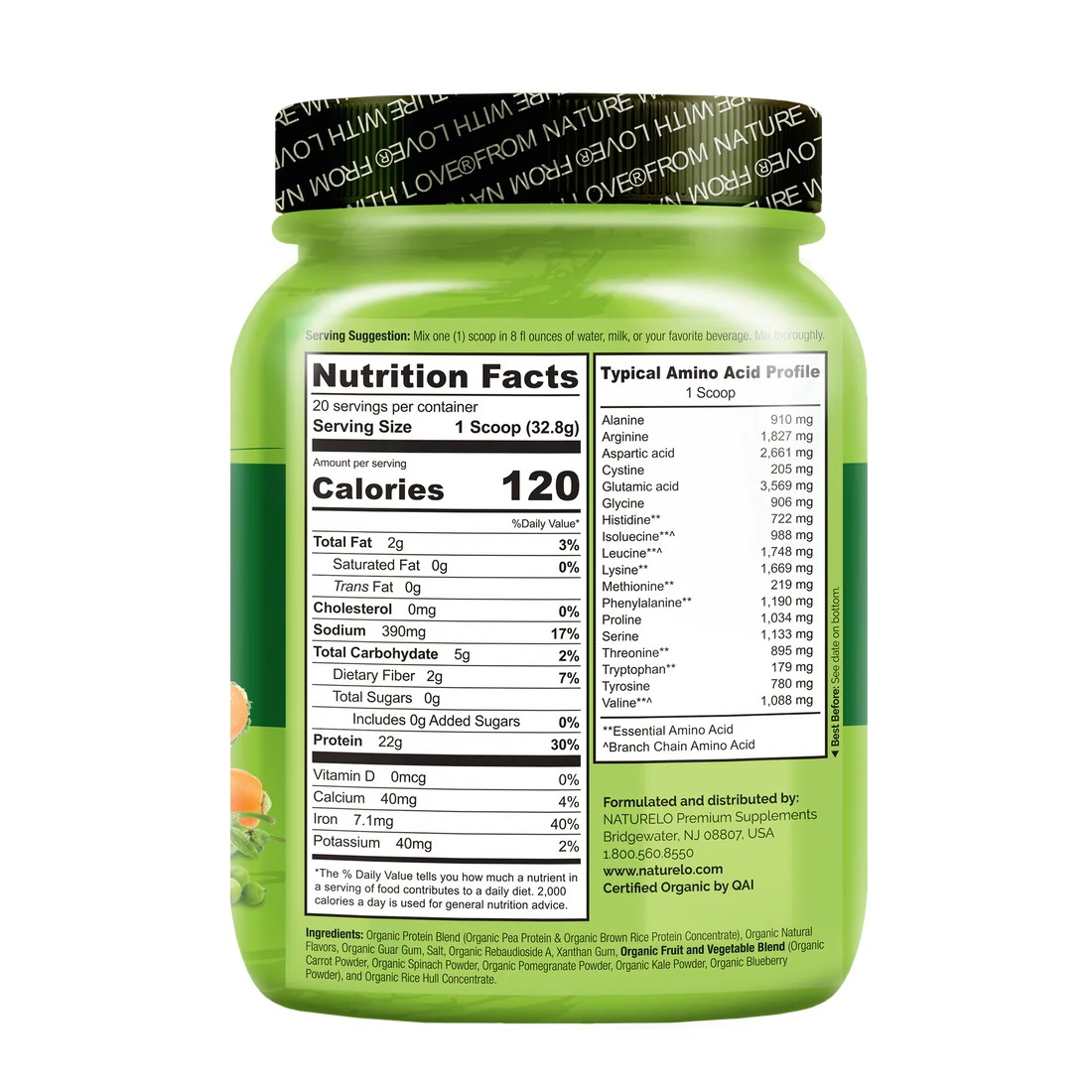 ORGANIC FRUITS & VEGGIES : Because no meal is complete without fruits and vegetables, our protein powder comes with organic superfoods like spinach, kale, blueberry, pomegranate, and carrot for some extra plant power, from nature with love.